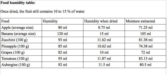 Our chosen product is the Solar Dehydrator we want to be a part of the solar industry which is still growing. There are already some similar products worldwide which are explained in the next chapter. For having a difference to some other companies we decided that our solar dehydrator is designed for drying fruit and vegetable. The main goal for our product is consequently to drain 85-90% of the moisture from the fruits or vegetables. After that they are preserved and could be eaten as a snack or in muesli. The aim of the preserving is to cure the fruit or vegetable. Table 3 depicts few examples: