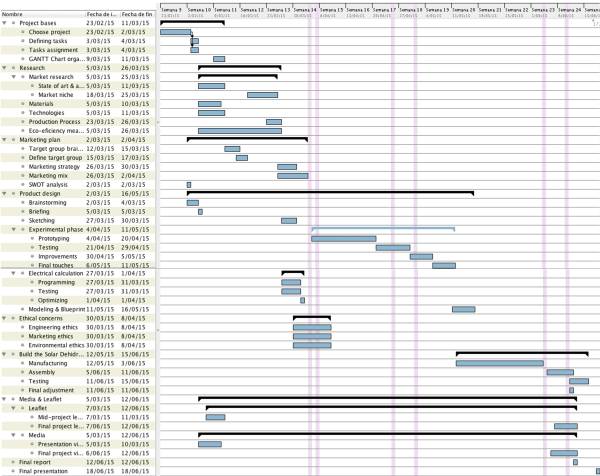 In order to establish the project plan, Work Breakdown Structure was created, in which entire arrangements and work division of the project are included. What is more, the Gantt chart was developed in order to in further phases of the project. Complete effort to establish WBS and Gantt chart was done with the usage of Microsoft Project software. The service of program was presented during Project Management classes. The Work Breakdown Structure of our team is presented below.